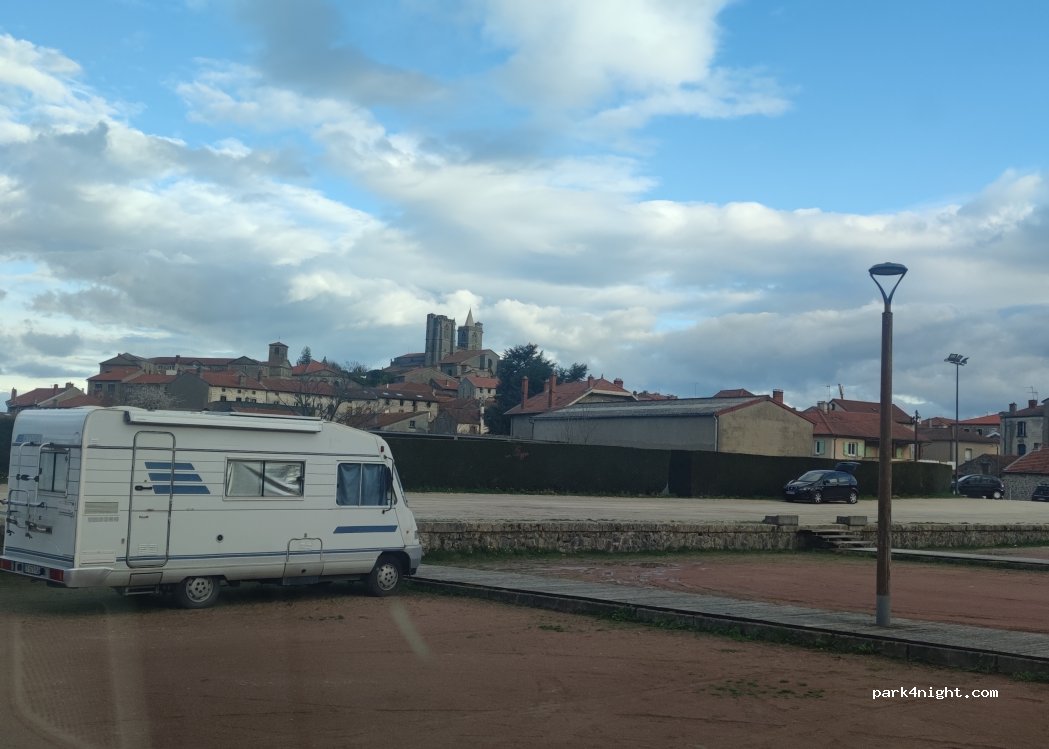 Très grand parking. Nous avons passé une nuit tranquille, endroit assez calme (nuit du samedi au dimanche). Proximité station service et de lavage, accès au centre ville assez rapide. À proximité de la gendarmerie. Borne de vidange et eau gratuite. Merci à la municipalité pour cet aménagement.