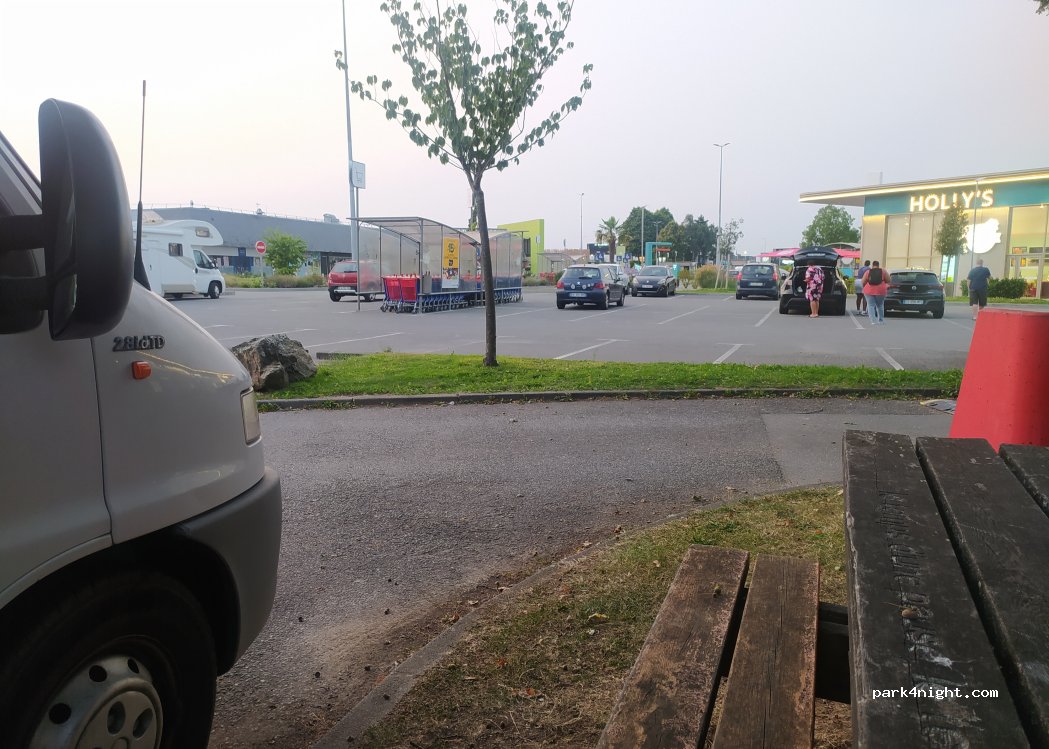 Stationnement du centre commercial sans services. Nous avons passé une nuit tranquille avec deux autres camping-cars. Avec piste cyclable vers le centre
