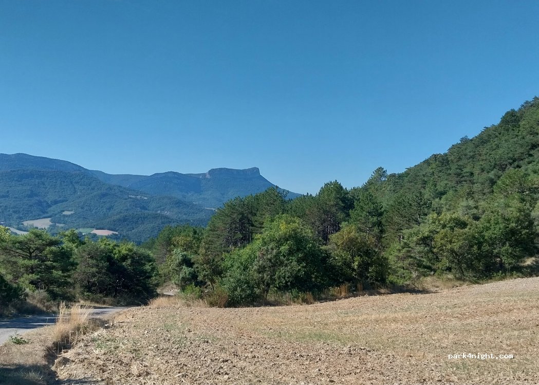 Petit parking au calme. Par contre, la première photo ne correspond pas au lieu. La deuxième oui. Il n'y pas de grande vue dégagée.