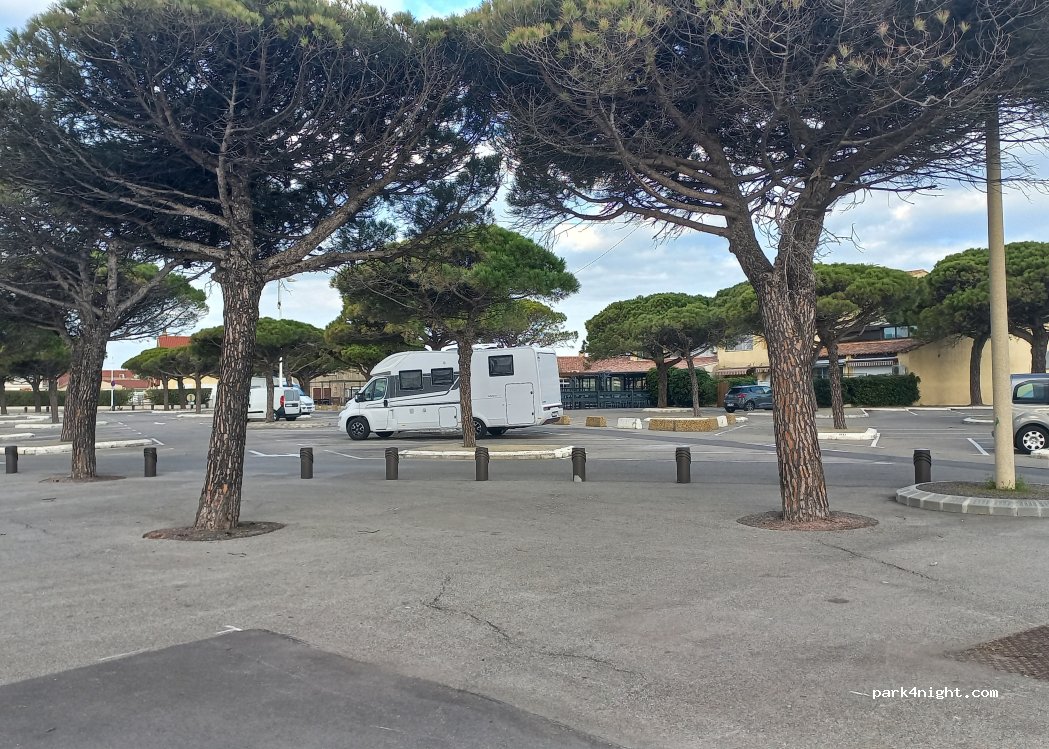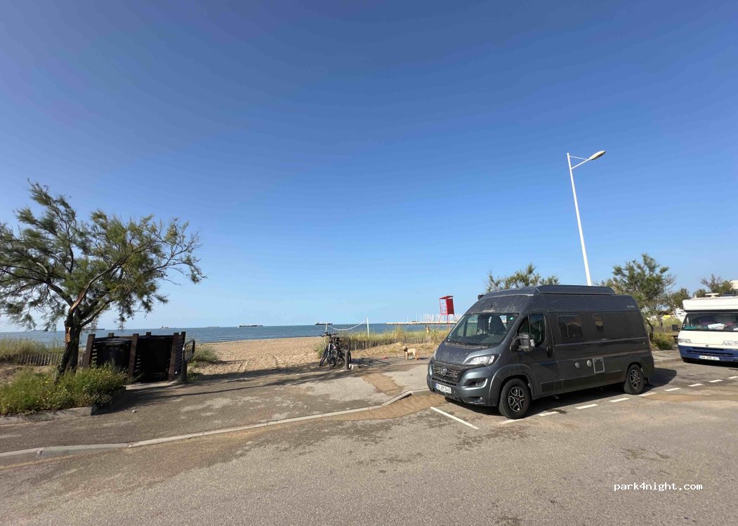 Free parking without height restriction. Close to the big beach and the feasts where you can eat in the evening in a good atmosphere. Tasting of Camargue oysters next door. Very quiet at night. (1 night only) Be discreet and respectful so that this place remains accessible under these same conditions.
