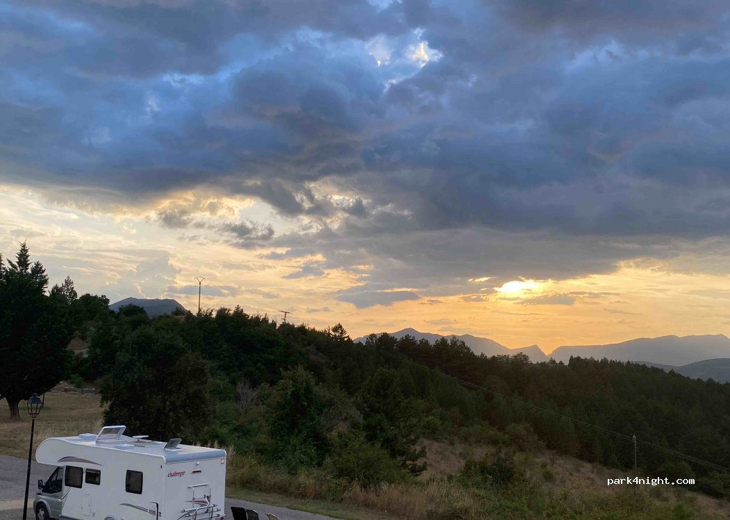 Parking en haut du village très calme avec très belle vue! Nous y avons passé une bonne nuit en compagnie de chevaux et les qq mouches qui vont avec lol Il y a également 2 lampadaires pour ceux que ça dérangerait. Dans tous les cas, je recommande !