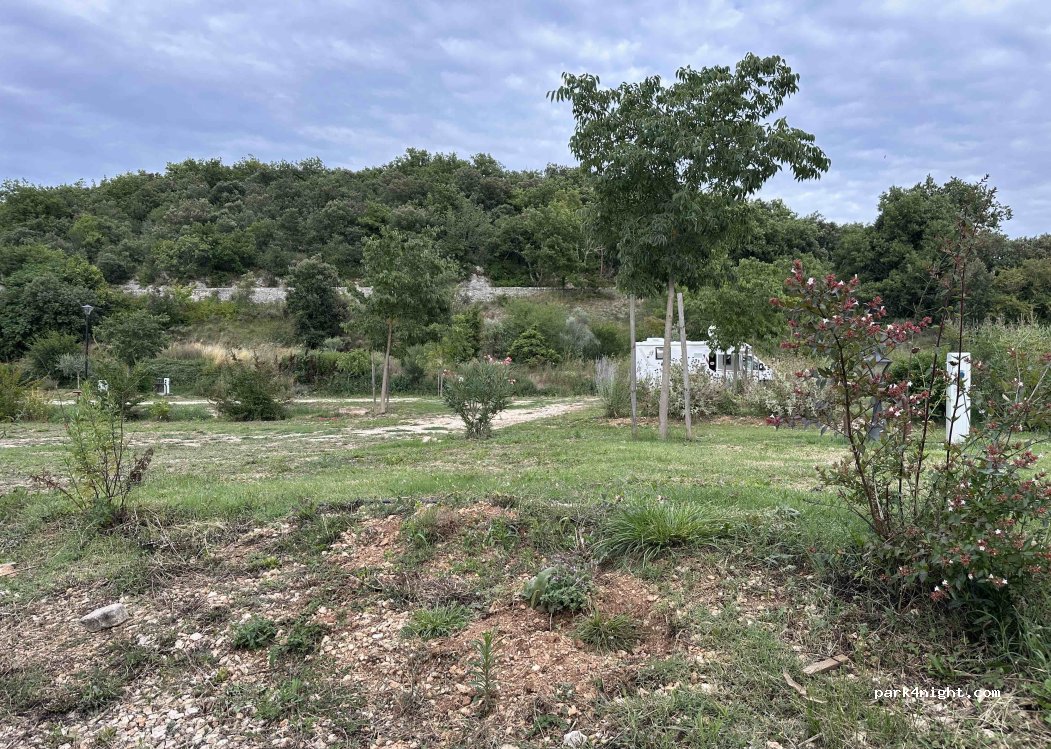 Soyons indulgents ´ Paris ne c’est pas fait en 1Jrs Emplacement délimite par des petits massifs ´ qui vont grandir La route à proximité ne crée aucunes nuisances Village tout prêt Départ de Chemin de rando Tout y est . Pour les grognons les aires dans le secteur ce compte sur les doigts de la main Alors merci à ceux qui font des efforts pour nous accueillir