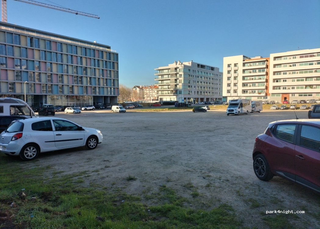Parkplatz umgeben von modernen Wohn- und Geschäftsgebäuden. Altstadt fussläufig. Habe hier mit dem Camper nur zum Kurzbesuch von Aveiro gestanden, aber eine Übernachtung ist vorstellbar.