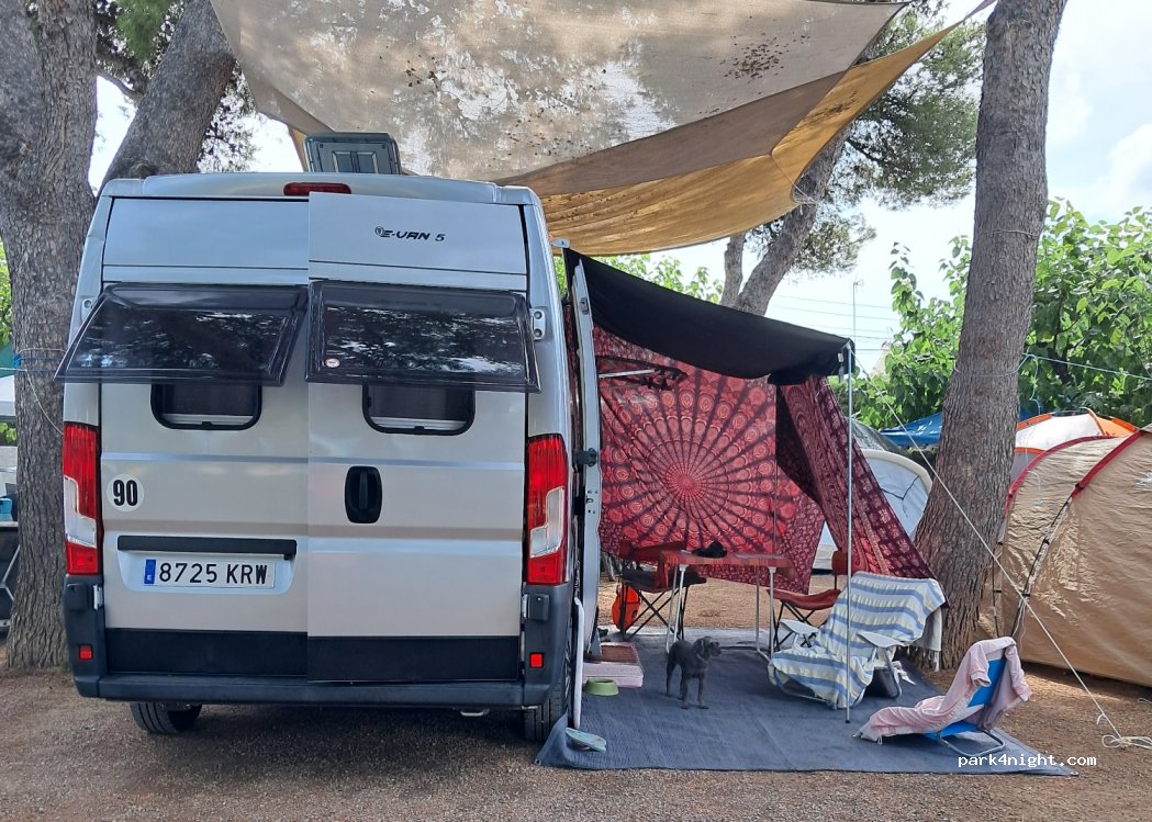 Camping cerca de playa. Ojo... Árboles muy bajos. Es muy complicado meter la autocaravana de más de 2'50 de altura.