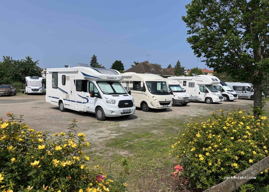 Les places de l’aire de camping car sont prises d’assaut mais le parking est tellement grand que nous nous sommes installés et nous avons passé une très bonne nuit merci à la municipalité très bien situé