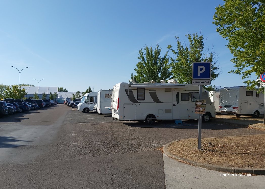 Grand parking voiture et bus. Avec 6 places réservées camping-car. Pas de voiture, ni de bus, à voir en été ? Nuit calme proximité centre ville, basilic et parc. Très jolie ville à visiter.