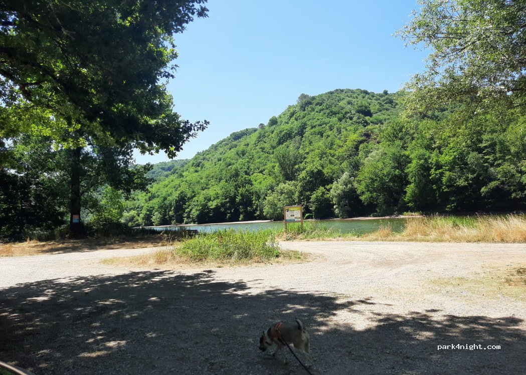 Wunderschöner Platz für ca. 3 Fahrzeuge, die restliche Fläche sollte als Wendeplatz für die Fischer frei gehalten werden. Wir hatten alleine 2 prima Nächte hier. Direkt am Ufer des Stausees, Strasse ein wenig zurückversetzt und nachts praktisch nicht befahren. Picknicktische und Abfalleimer vorhanden. Angeln ganzjährig erlaubt, baden möglich. Schöne Ortschaft Flussaufwärts 20min zu Fuss.