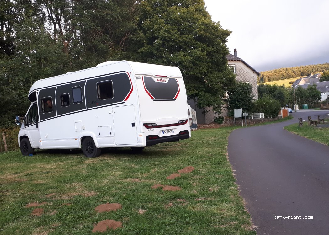 à quoi bon faire du camping sauvage. ici tout y est. on s'installe, 20h la personne de la mairie passe, on papote, on règle(12,60, un van,3 pax et un chien) les cloches des vaches et du Roots, le tout ds le respect de la propriété. toilette et douche le matin en partant, quoi demander de plus.