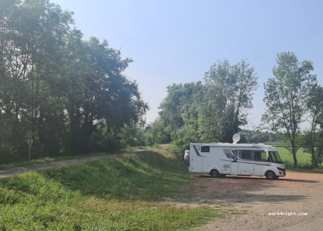 Parking on the edge of a very small street and the Voie Verte (hikers and bicycles). Very quiet. Flat area. Accessible in any size. Multiple vehicles possible. A few minutes from the Château de Cormatin. There is a tap at the leisure area.