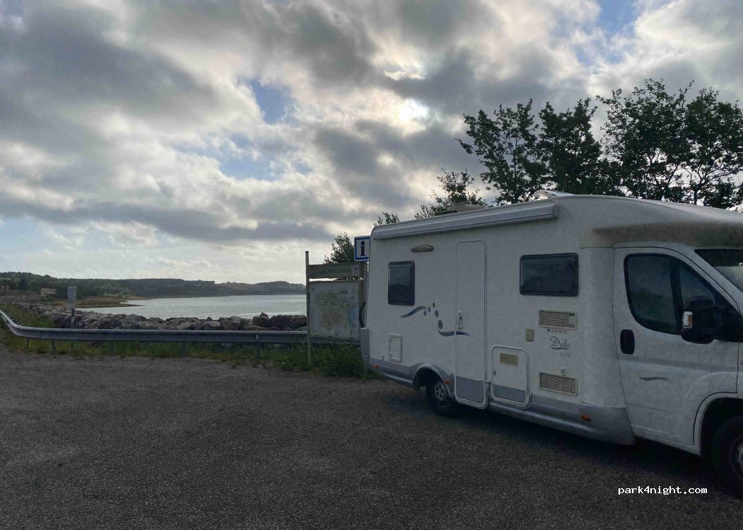 Un pequeño parking a la orilla de la carretera , con vistas espectaculares al lago.Muy tranquilo, sin tráfico por la noche y con apenas a partir de las 7 am. La única desventaja es que está muy pegado a la carretera y estás muy a la vista