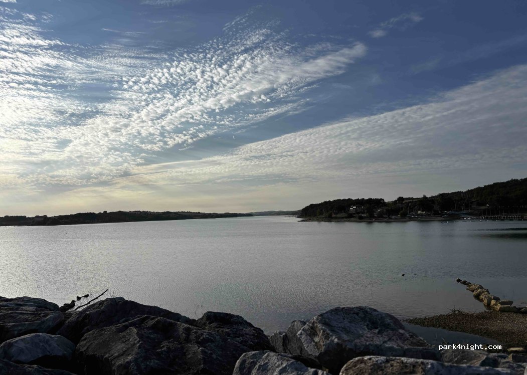 An sich eine schöne Sicht auf den See, aber Parkplatz direkt an der Straße auf dem Damm.. bei Anwohnern wohl nicht gerne gesehen dass man dort die Nacht verbringt, wurden morgens um viertel vor 6 von hupenden vorbeifahrenden Autos geweckt. Abends sehr viele kleine Insekten die einen anfallen und beißen bzw stechen