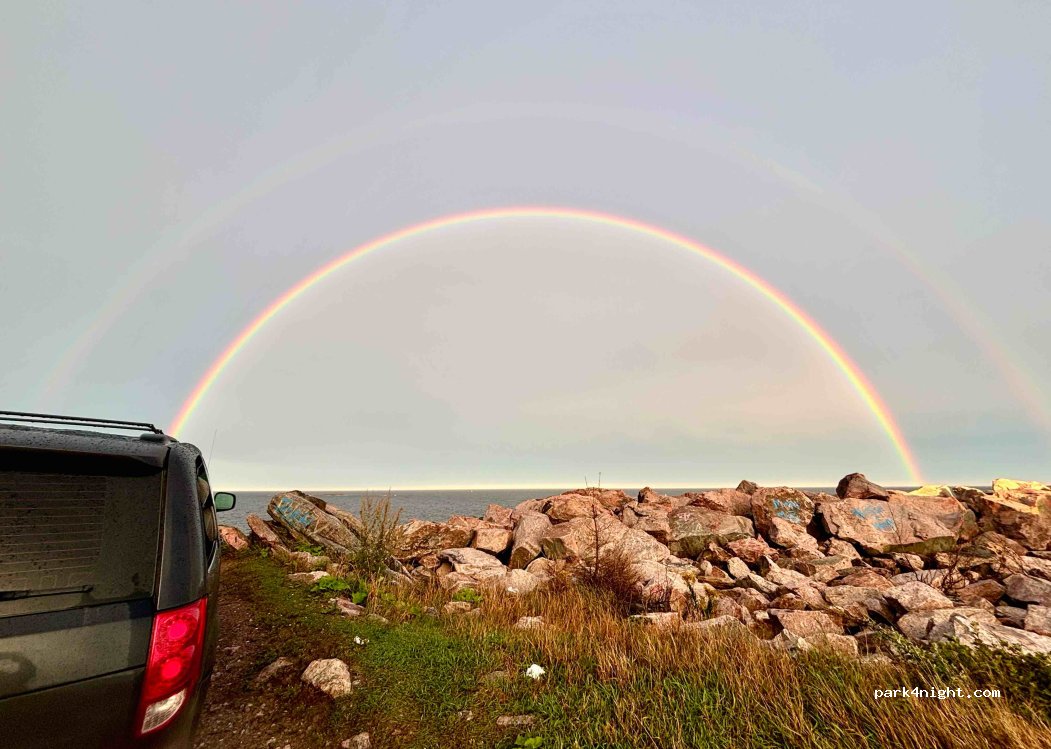 Aucune pancarte d indertiction. Pas clairement indiqué "stationnement municipal". Par la rue Maritime, en gravier. Tranquille, près de l eau
