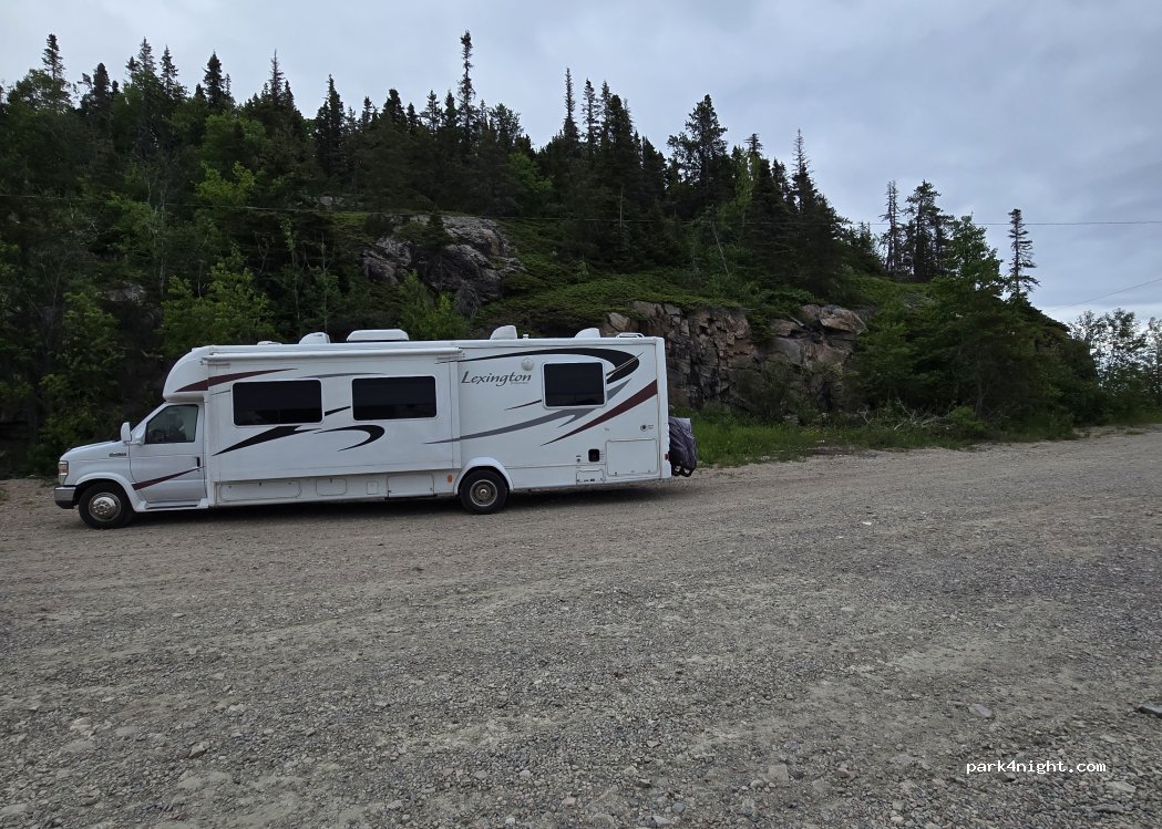 Très grand stationnement sur gravel avec descente pour mise à l’eau des embarcations. Aucun panneau interdisant de camper la nuit. Accès à une belle longue plage. À côté de l’ancien traversier et d’un camping, très beau point de vue, beaucoup de gens viennent faire un tour mais très tranquille la nuit.