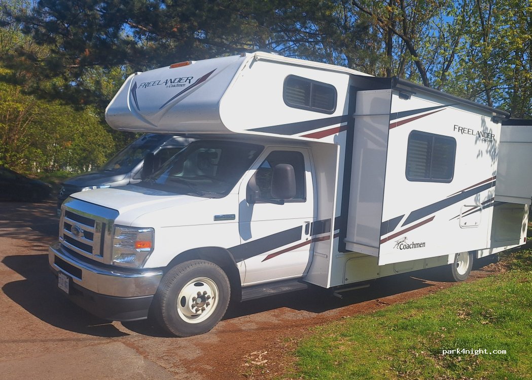Parfait emplacement pour vr moins de 26 pieds. On a bien dormi, très calme. Nous étions 6 petits vr. Piste cyclable et superbe parc près de la rivière.