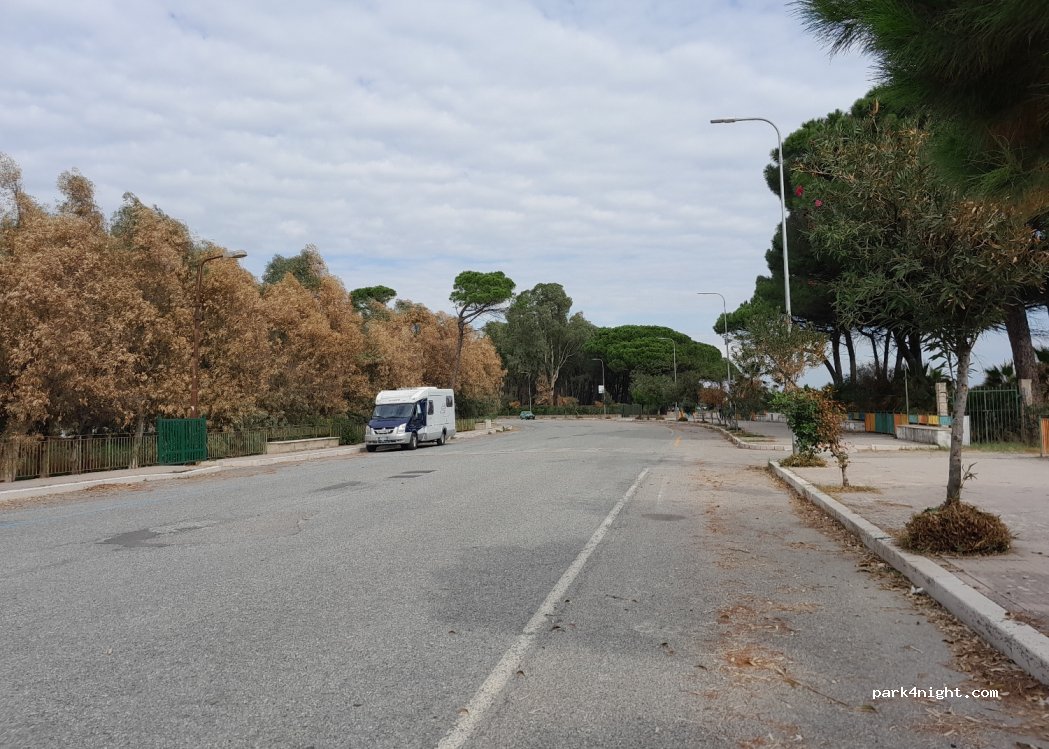 Free parking on the asphalt of the seafront, near beaches, bars. Guys rent SUP boards, canoes and more and there was a yoga meeting. We left in the evening and didn't stay overnight but I think it would have been a quiet night. There were other campers along the way that I don't think left like us. No services, easy access for all sizes. Sandy beach but in the first meters of the sea there are large stones (in the most isolated area, in front of the beaches it improves. Shoes are necessary.)