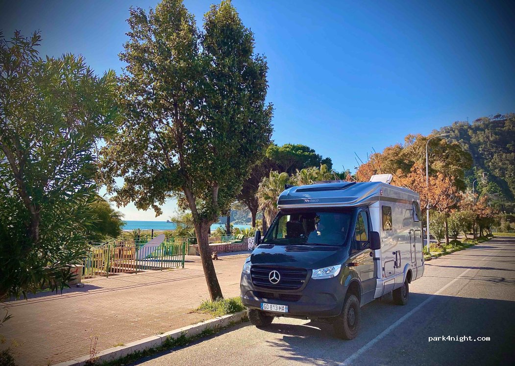 Un beau endroit calme pour la nuit mais attention, il y a un club ou il y à de la musique ( je pense le week-end hors saison ) ,une belle plage propre et des pizzas au restaurant de 5/ 12 € à emporter si on veut
