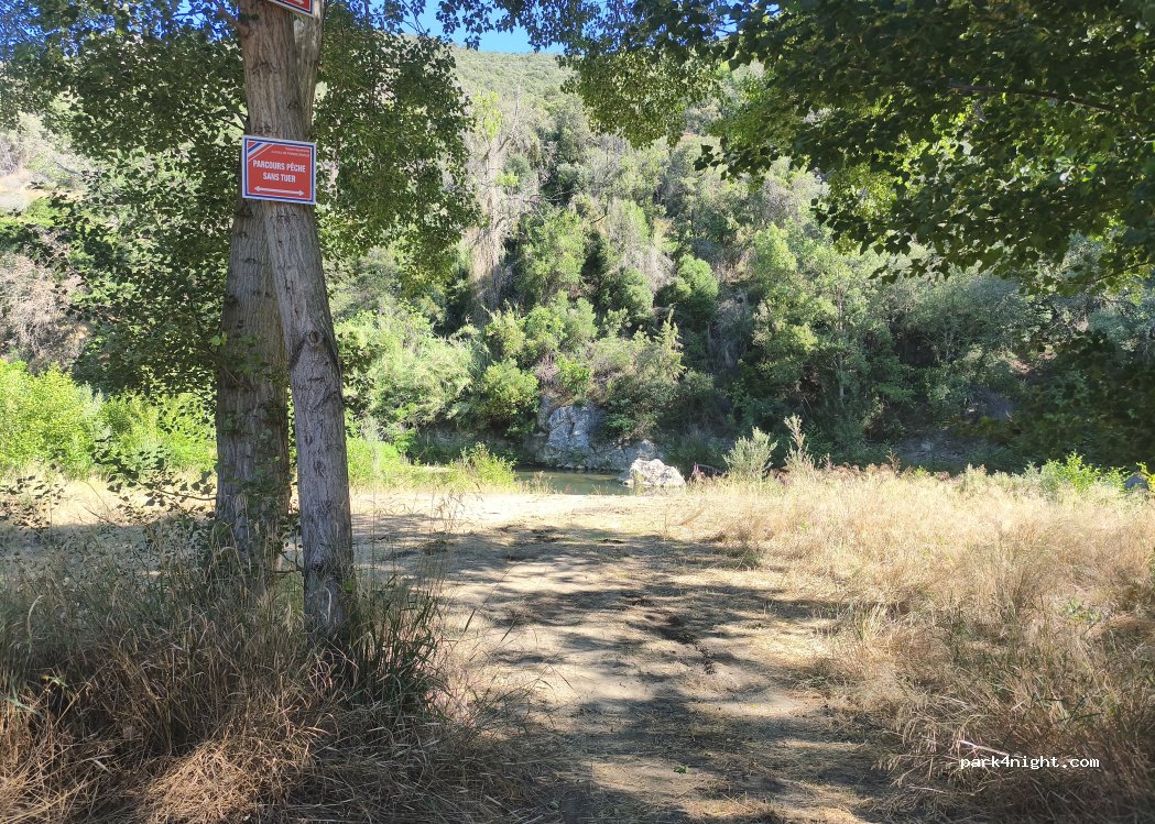 Gran esquina en el borde del Agly para 1 a 3 camionetas. No demasiado profundo, pero es posible nadar. Aparcamiento a la sombra. Tenga cuidado si quiere acercarse lo más posible a la playa: el suelo está suelto debajo de la alfombra de hierba. En resumen, ¡te dan ganas de quedarte allí!