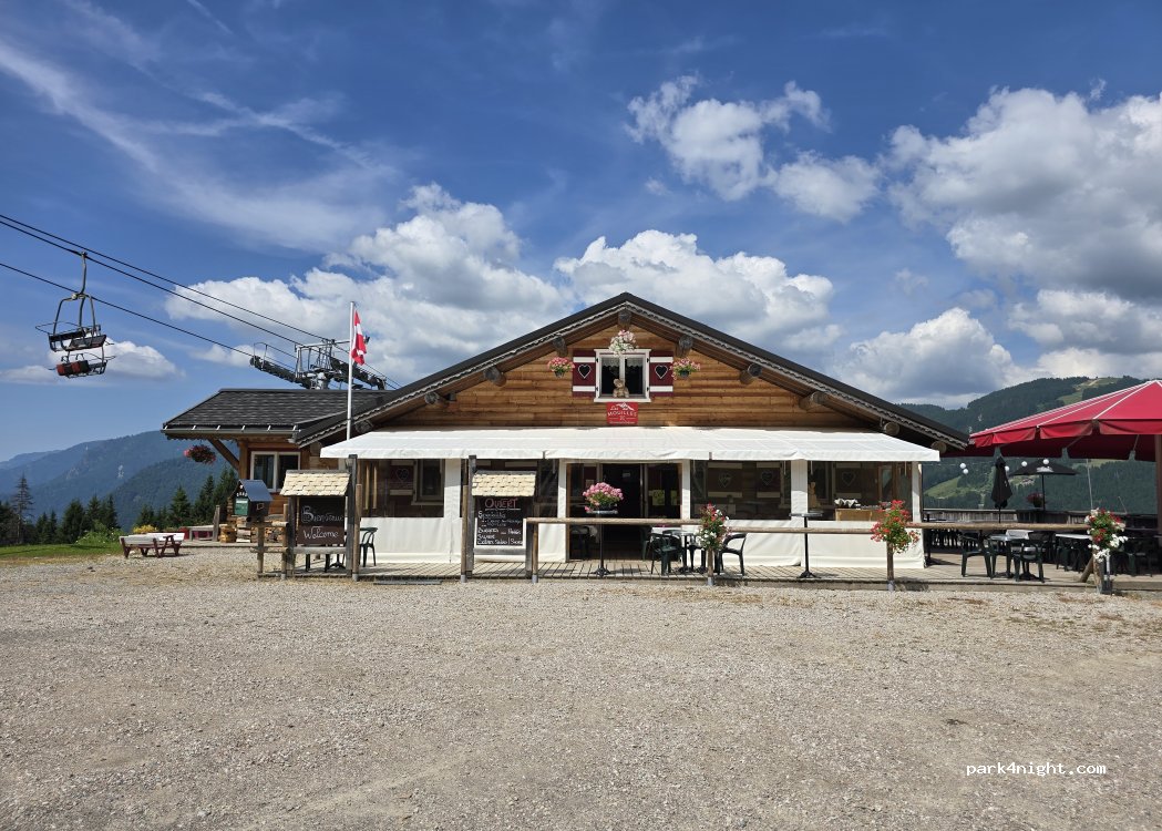 Friendly restaurant owners providing good quality food. Very quiet at night, free to park if you eat/drink at the restaurant. Free WiFi in the carpark. Located under Le Pléney ski lift. Fantastic views.