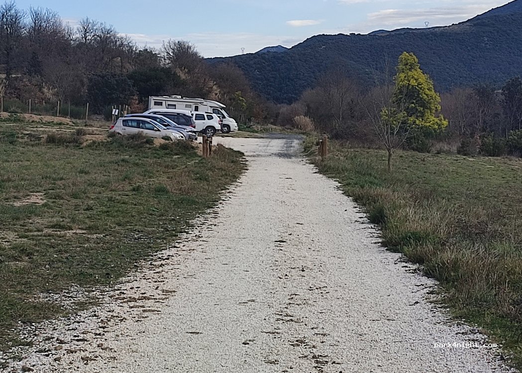 Facilement accessible avec un petit camping car (Challenger 102), attention à l'épingle en venant d'Ansignan. Nuit calme au bord de la rivière avec vue sur le ville en contre haut, pas un bruit, nous étions complètement seuls tout la nuit. Je recommande !