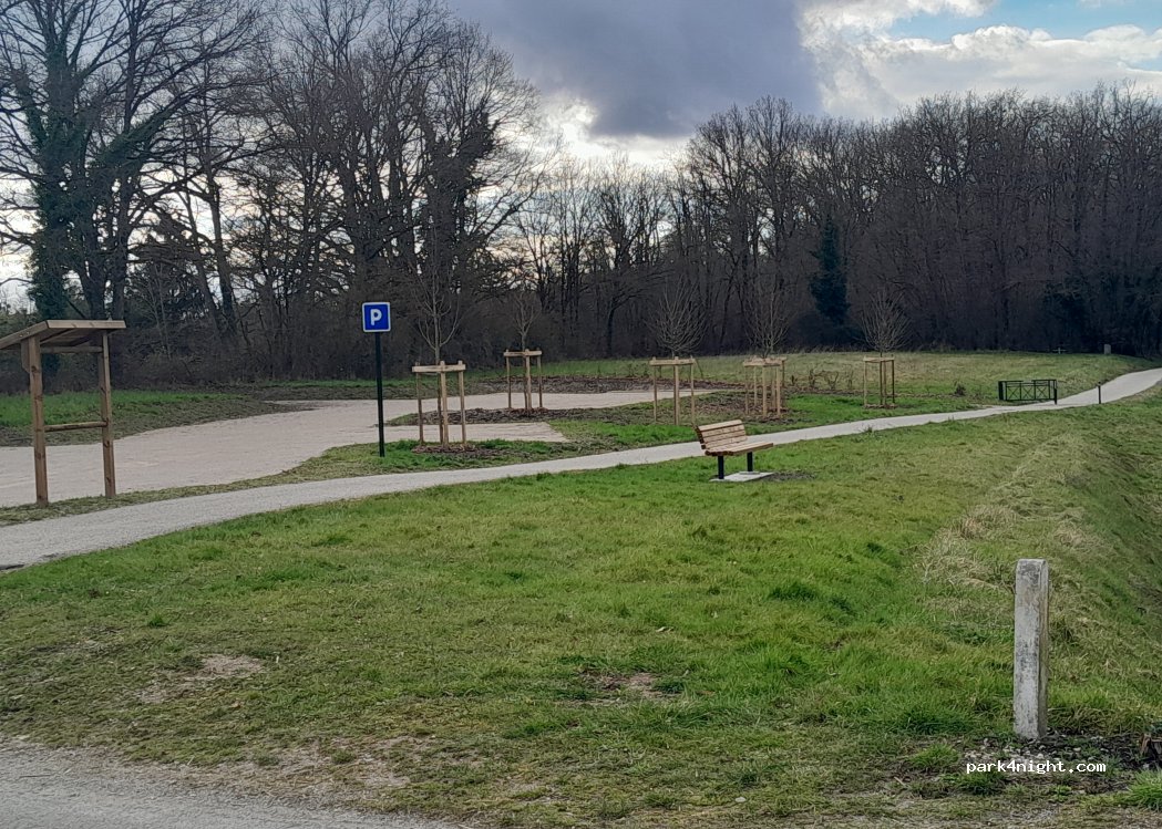 parking agréable et à l'ombre très propre et calme mise à part le bruit d'effaroucheurs la nuit balade le long du canal