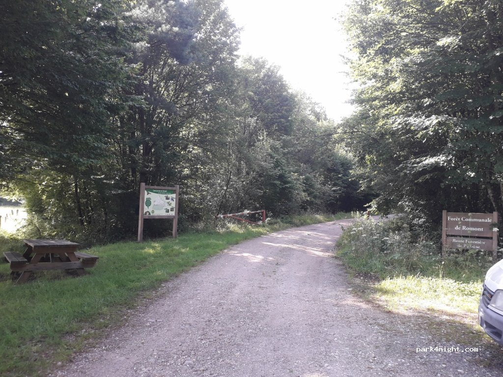 Possibilité de passer la nuit en fourgon. Calme. Pas de lumière. Table de pique-nique à disposition. Pas de poubelle, donc merci d'emporter vos déchets.
