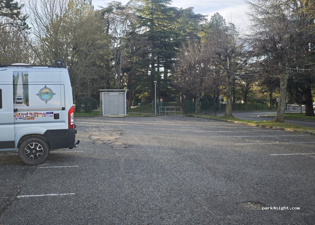 La position du parking proche d’une route très passante fait que le bruit est présent toute la nuit ! Si votre van ou votre camping car n’est pas isolé ou que vous craignez le bruit n’y restez pas. Pourtant le parking est parfait, toilette publique propre, une aire de jeux pour enfant et de pic nic.