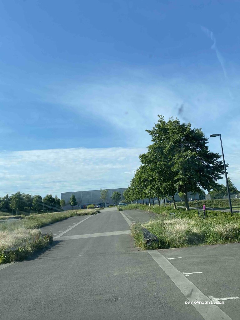 Parking calme, sans barrière de hauteur. Éclairage qui s’éteint la nuit. Allez plus dans le fond pour être à plat. Deux nuits là-bas sans problème. Une ronde de la police municipale qui ne nous a rien dit. Ça dépanne .