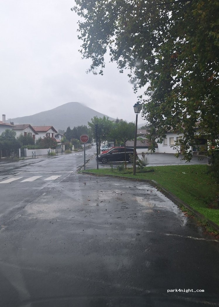 Parking près de l'école du Charmant village d'Ascain. À 2 pas du centre, parking calme en cette période estivale, si on fait abstraction du passage de voitures omniprésent, mais c'est inévitable dans le coin. À moins de 10min de Saint Jean de Luz en voiture.
