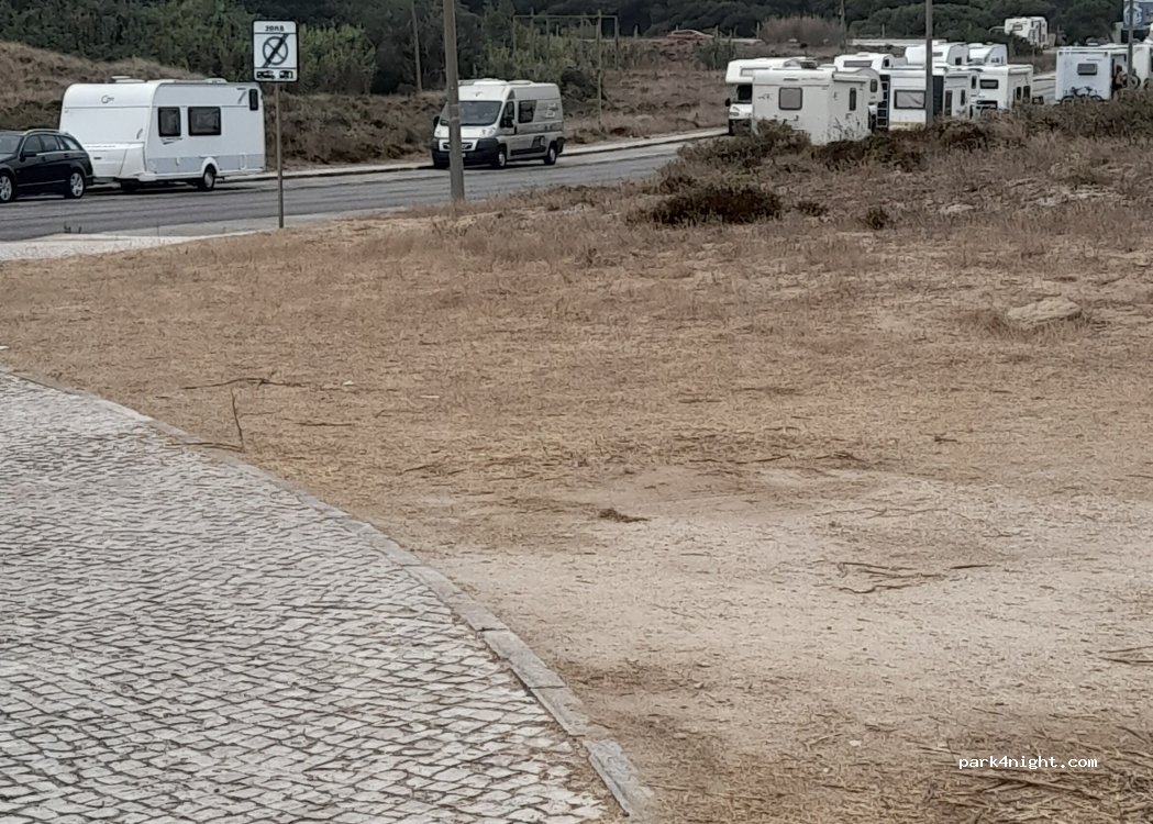 Aparcamiento a pie de carretera justo antes de la señal que prohíbe el estacionamiento a Autocaravanas. Si llegas como nosotros muy tarde y con el camping cerrado está bien, pasamos dos noches,la primera éramos quince autos durmiendo, la segunda solo ocho y quitando la música de la noche de sábado hasta las tres de la madrugada todo bien.