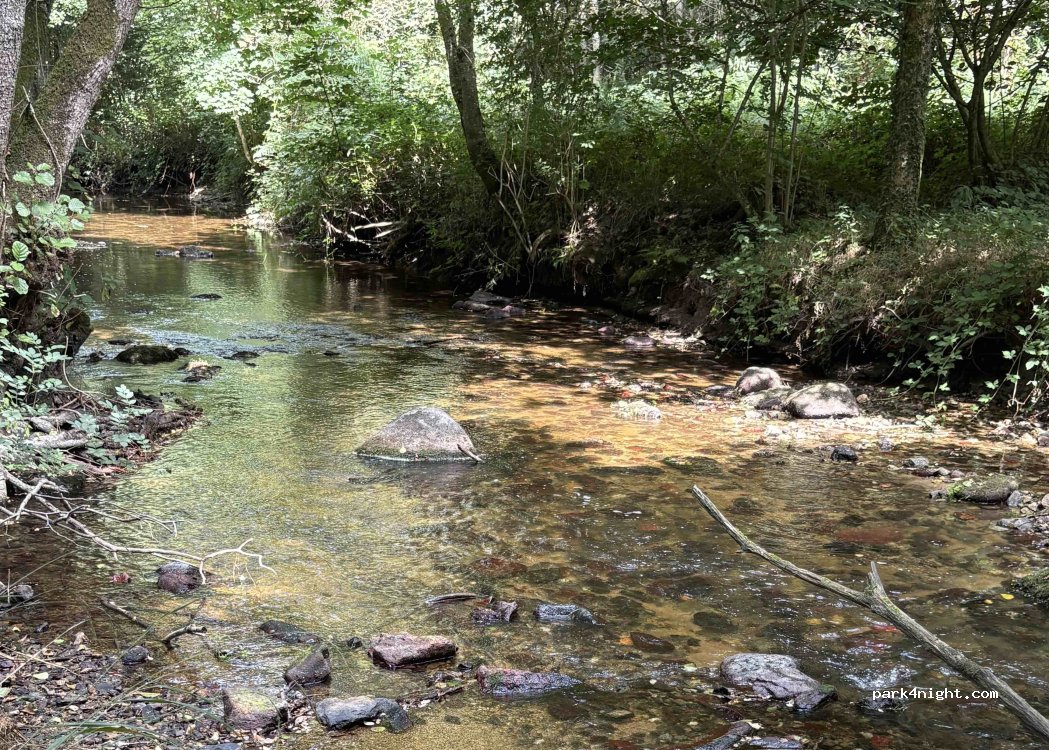 Geweldige parkeergelegenheid met een tafel. leuk riviertje om rond te spetteren (niet erg diep). schaduw, ruimte voor een paar cc.
