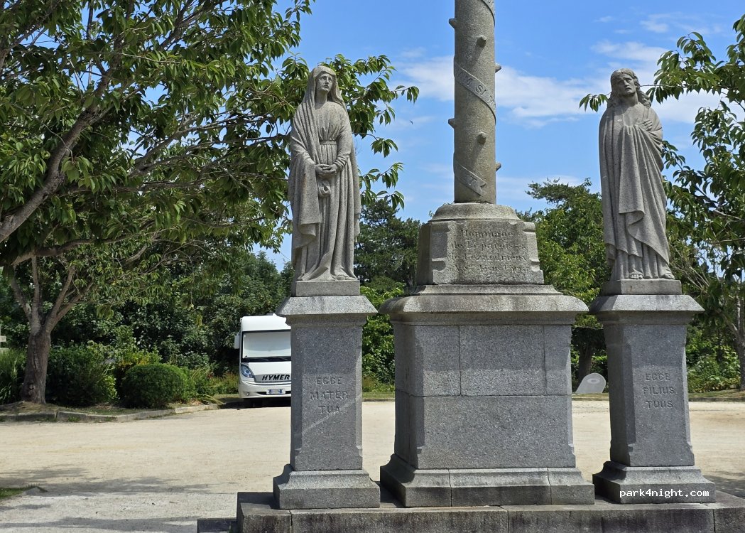 Lovely quite safe level parking area behind the church in the church car park, do what I did and go into the church and put €10 euro in the donations box up by the candles. Perfect spot