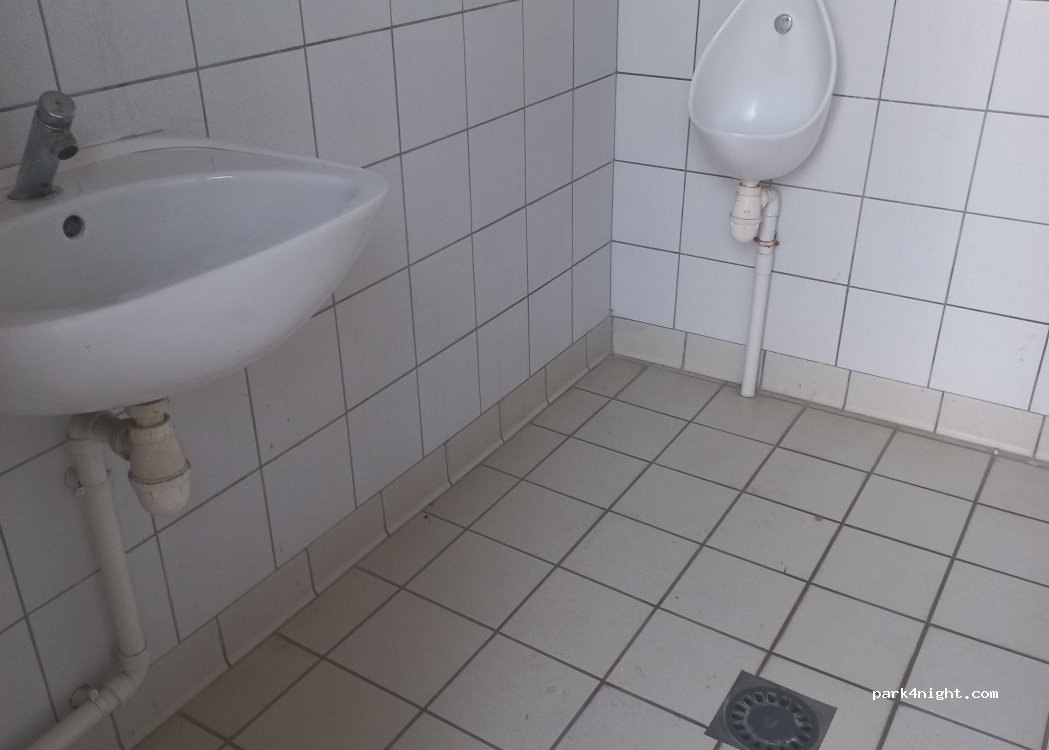 Très bon emplacement pour une pose, voire pour la nuit (pas d'interdiction affichée). Tables de pique-nique, poubelles et eau. Toilettes publiques très propres à 50 m.