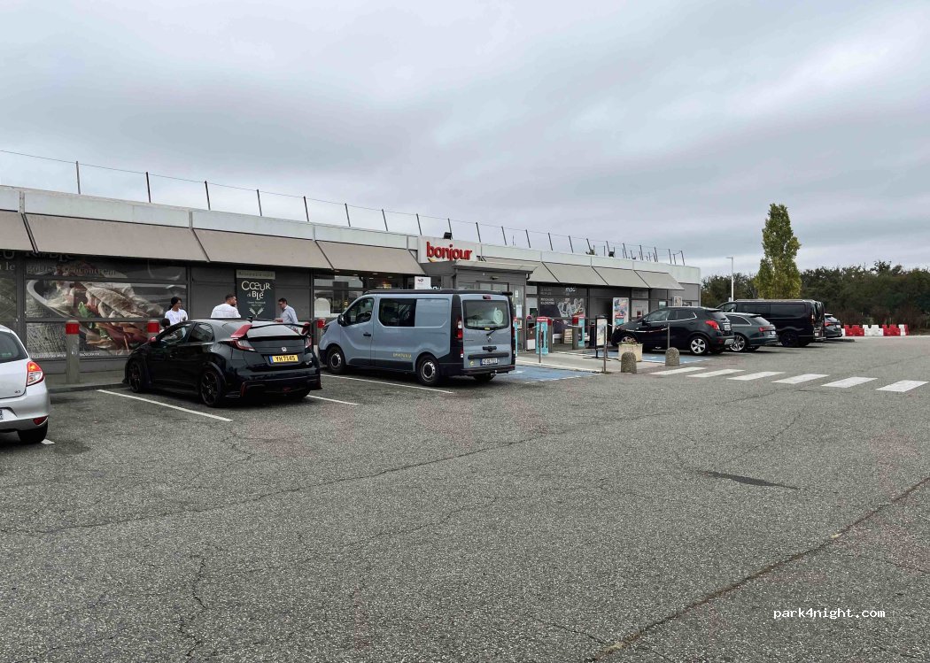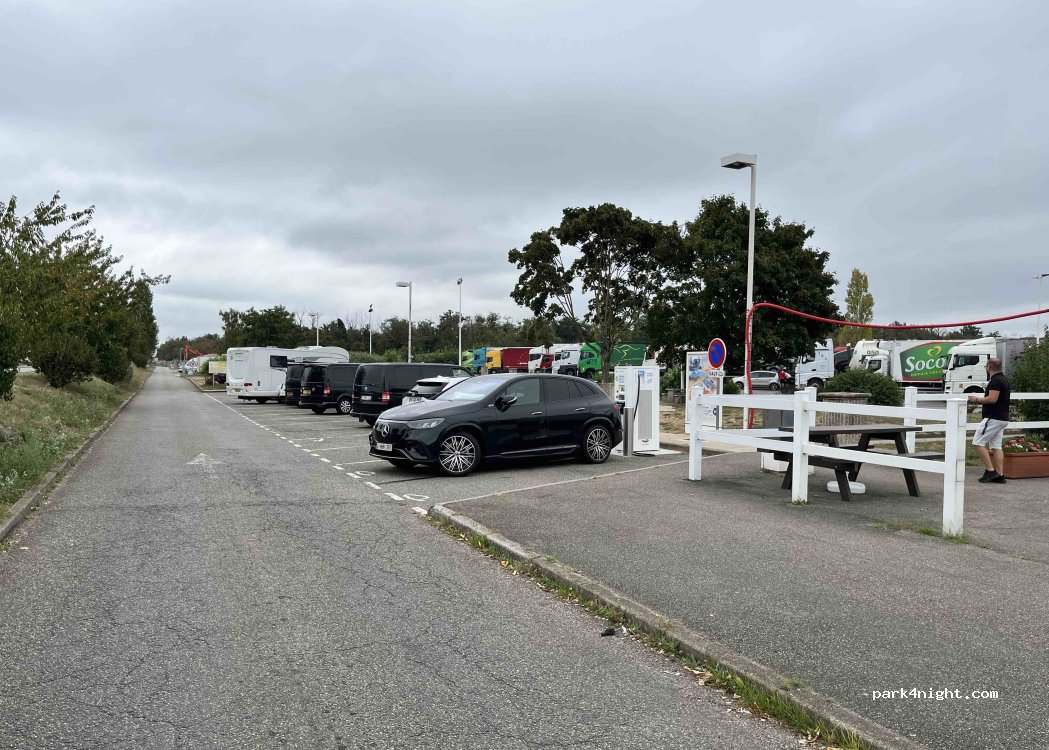à éviter autant que possible pour la nuit. très bruyant à cause de la ciruculation tt la nuit. on est resté uniquement parce qu'on est arrivé de nuit et que l'on ne voulait pas chercher un autre emplacement.