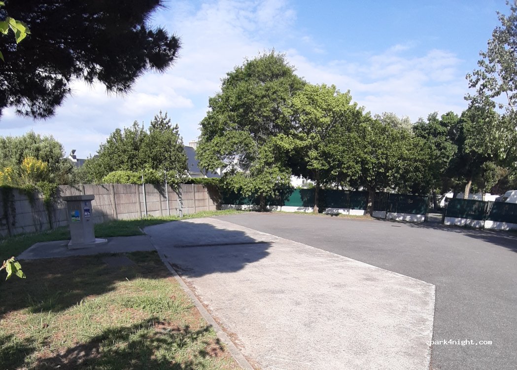 Son plus : très bien situé, a 2 pas du centre du pouliguen et de plage. Par contre, attention à la borne 50 litres d'eau par jour ou 10 mn, si vous rincez la cassette des wc, vous n’aurez presque plus rien pour le réservoir et n’allez pas au camping pour prendre de l'eau, c'est interdit, d'ailleurs beaucoup de choses sont interdites au camping pour les camping-cars