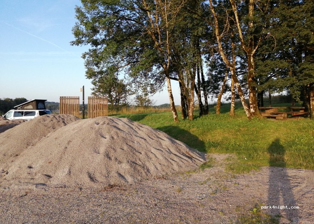 Bel emplacement sur le belvédère. 2 grande tables. Excellent réseau. Un peu bruyant à cause de la route assez passante le matin. Spot réduit en ce moment car cela sert de dépôt de gravillons.