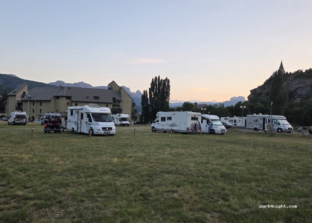 Kostenloser Stellplatz der Kommune von Jausiers. Ortschaft mit Einkaufs- und Essensmöglichkeiten. Strom an den Stellplätzen mit Aufpreis erhältlich.