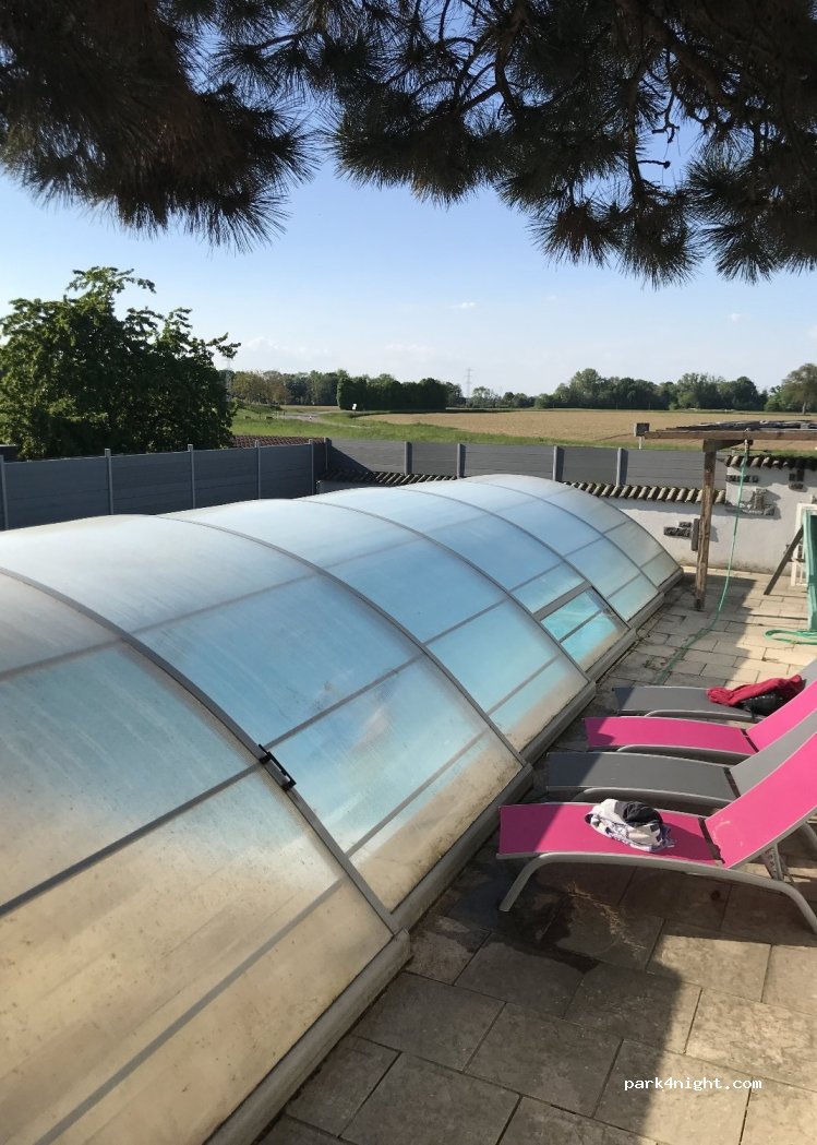 Pensavamo di fermarci una sola notte ma abbiamo prolungato a due per la perfezione di questo posto! Accoglienza e disponibilità dei proprietari fuori dal comune, indicazioni impeccabili, stazione molto vicina per Strasburgo in treno con facilità. Acque grigie, acque nere, elettricità, acqua… in più la coccola della super piscina ha divertito enormemente i nostri bambini. La nostra tappa migliore!