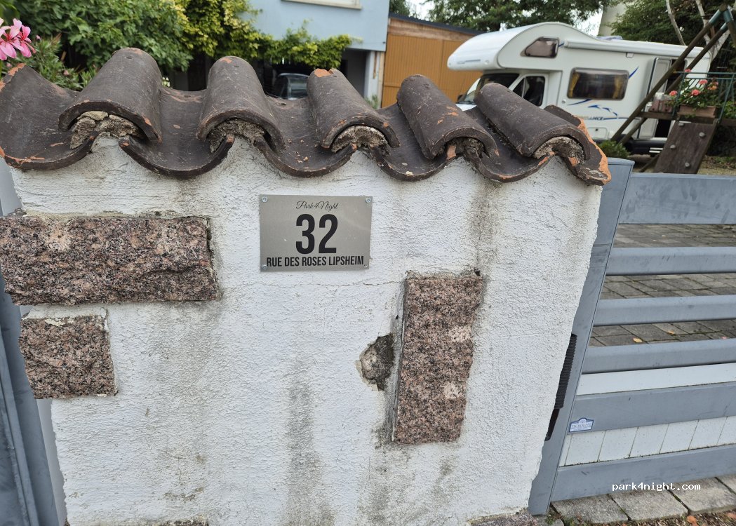 Absolute find, best secure Aire found. Drive slopes with assistance I got my 7.3m motorhome into the space. €10 a night for waste, water, black & grey waste. rubbish and recycle plus complimentary use swimming pool. EHU plus €5 a night. Helpful delightful family. Public transport links to Strasborge CTS app for 24hour pass. Beware sloping drive negotiable with care, need chocks to level.
