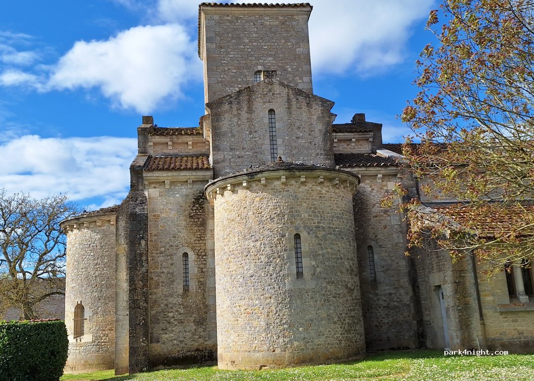 Gere gäbe ich 6 Sterne. Wir hatten eine ruhige Nacht hinter einer der ältesten Kirchen Frankreichs, ein karolingischer Bau mit Oratorium aus dem 9. Jh. Nicht oft haben wir uns so aufgehoben und willkommen gefühlt wie hier. Ein großes Kompliment an die kleine Gemeinde, die 400 m weiter noch einen schattigen Stellplatz mit kompletter Ver- und Entsorgung anbietet.