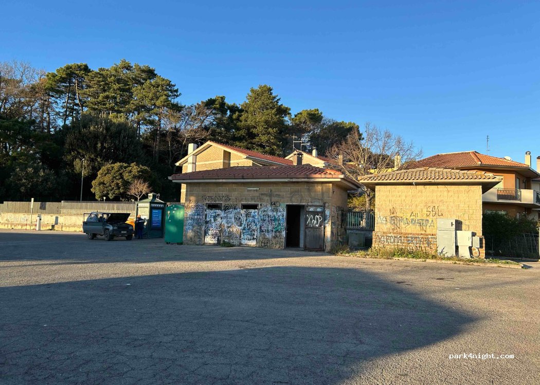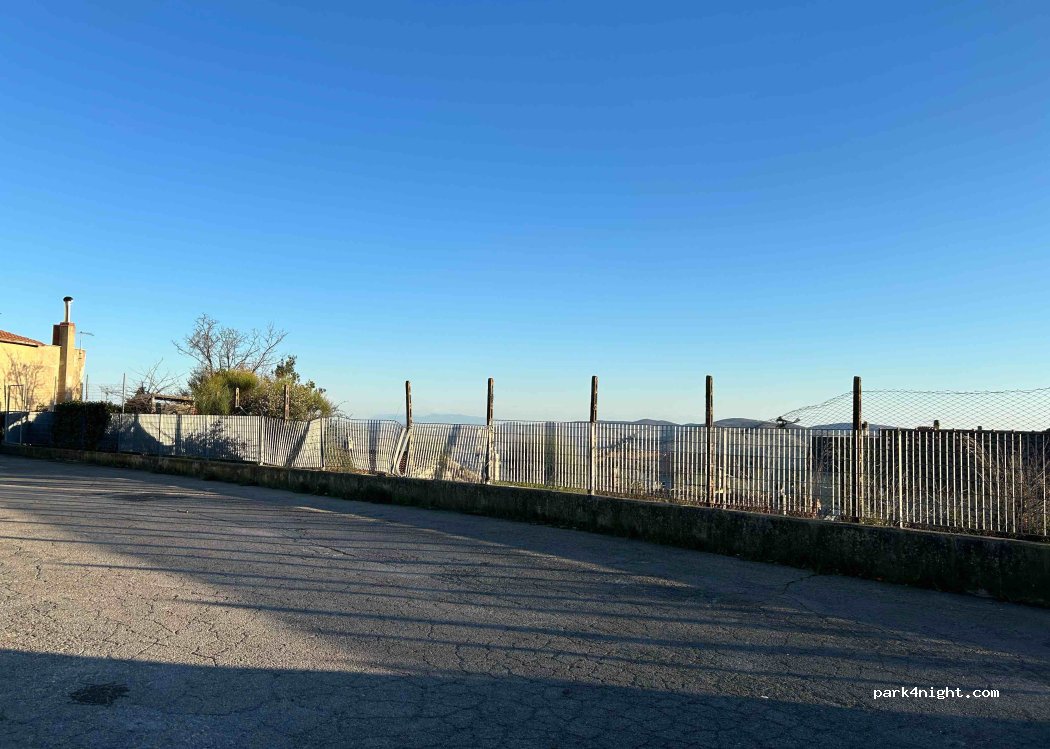 Ampio parcheggio.- in piano su asfalto. - bagni pubblici fatiscenti. - video sorvegliato. - acqua erogazione naturale frizzante gratuita. - 800 m dal centro. Ogni 2 ore Fermata sul piazzale varie corriere tolfa Civitavecchia. - Tolfa allumiere. manziana tolfa Roma cornelia. Controllare sempre gli orari per il ritorno pernotto tranquillo