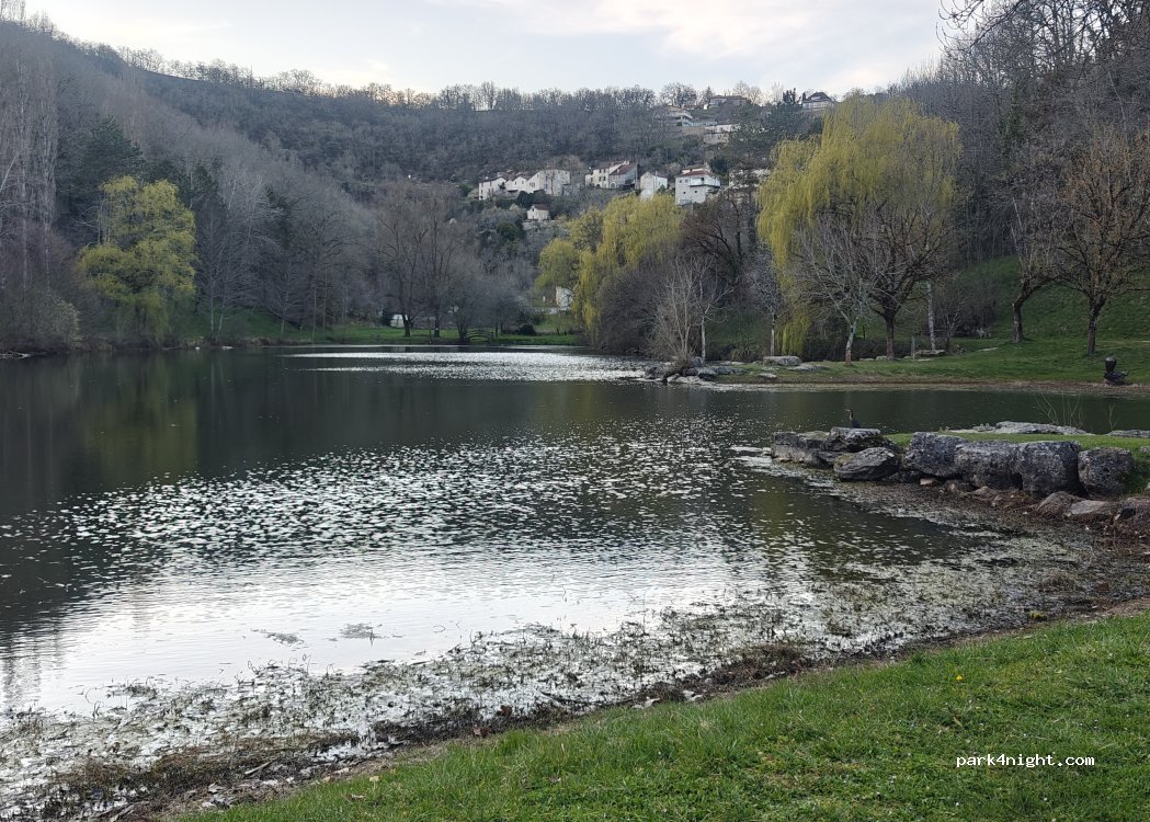 Zona de picnic y ocio junto al estanque. Ideal para una pausa para comer y para visitar el hermoso pueblo medieval de Caylus. Muy bien cuidado y sombreado. Está justo al lado del área de Cc.