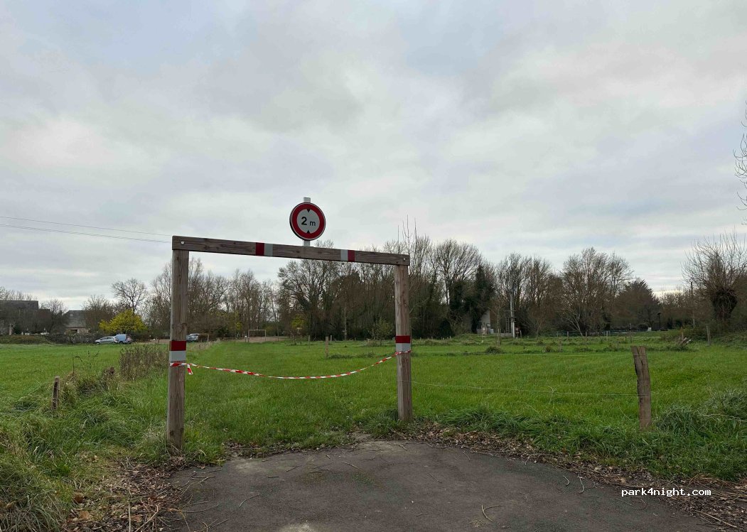 Parking en herbe, plat, proche toilettes publics qui sont nickel. Idéal pour passer une nuit au calme dans ce charmant petit village Merci à la mairie pour nous permettre de nous installer dans de tels endroits. Nous etions 10, chacun était tranquille.