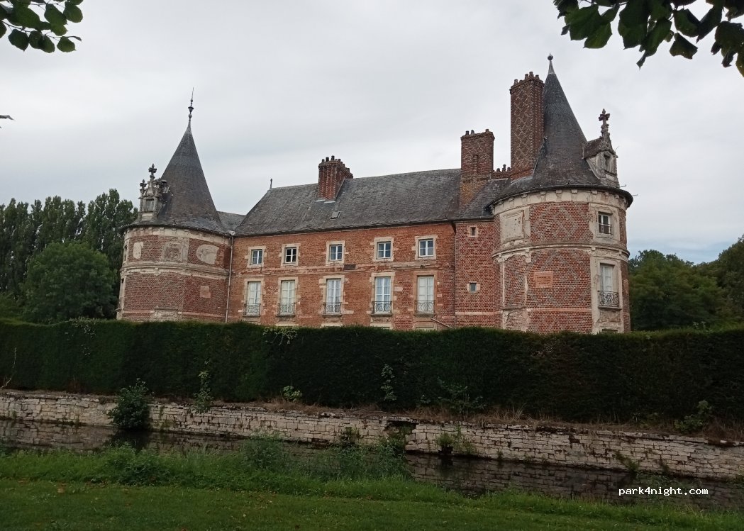 Get your van full of water and food (as no facilities at all) and enjoy parking in this quaint upmarket village where you’ll only see the occasional dog walker and have a spectacular view of the 17th century chateaux! The parking strip borders a beautiful square of grass with a moat bordering the chateaux at the bottom. The occasional church bells were lovely. We had a peaceful night feeling safe