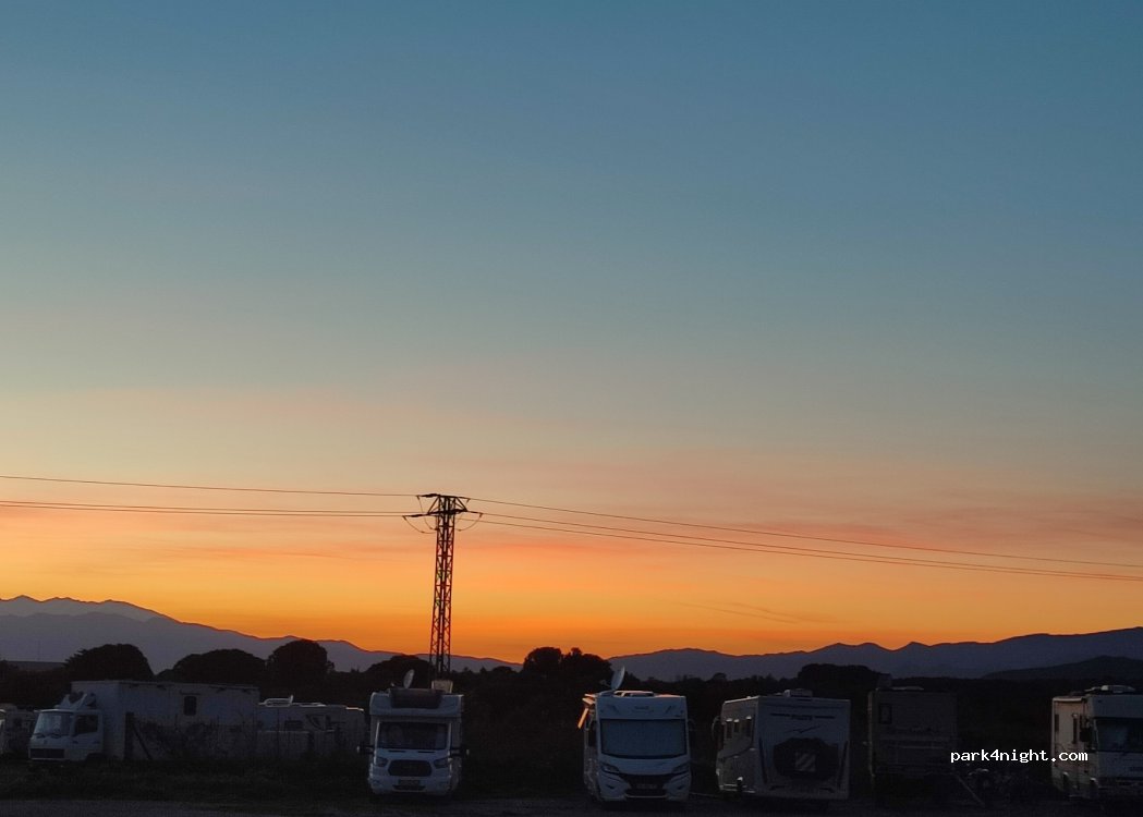̀nous venons de passer 2 nuits tres tranquilles. Ce parking est très grand et est tres pratique pour aller a la mer et au beau Mercat . il y avait carnaval. c'était super c'est le 2em séjour sur ce parking à Roses. nous y étions 3 nuits pour la fin 2025