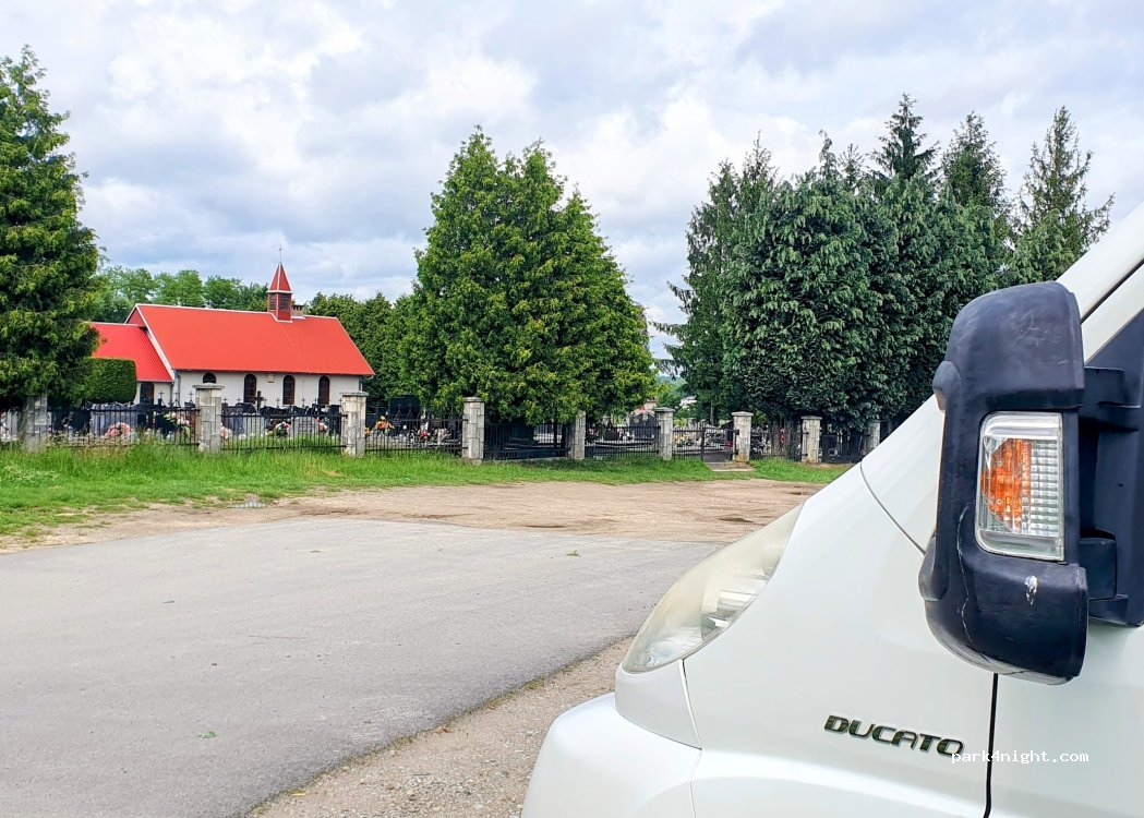 Easy to get to down a narrowish road alongside the cemetery. There is a small amount of hardstanding and the rest is dirt/grass. It's only a 10 minute walk back into the lovely little town square with its 2 pretty Catholic churches. I would happily stay there again.