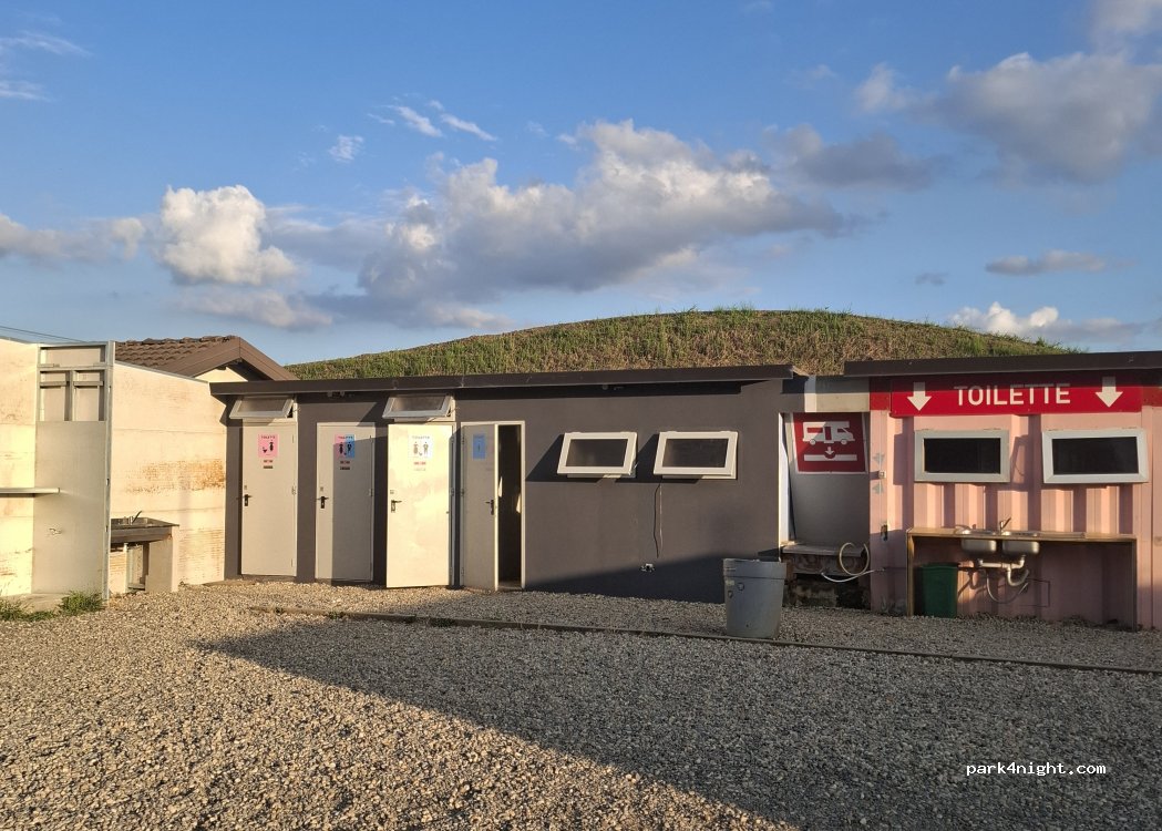 Ebenes Parken, Sanitäranlagen einfach aber okay, ab 18:00 ruhig. Für eine Nacht auf der Durchreise zu empfehlen