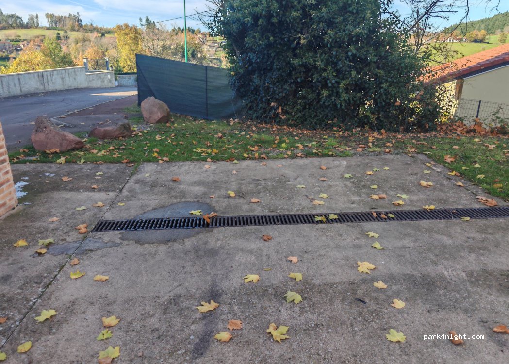 merci à la municipalité pour cette aire avec eau, vidange et stationnement gratuits, pas de P C, deux emplacements délimités mais grand parking, 2 restaurants, 2 boulangeries, 1 épicerie bien approvisionnée. petite commune qui vos le détour, en partant ou en revenant du Beaujolais, il y a le lac et le camping