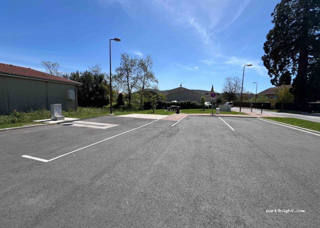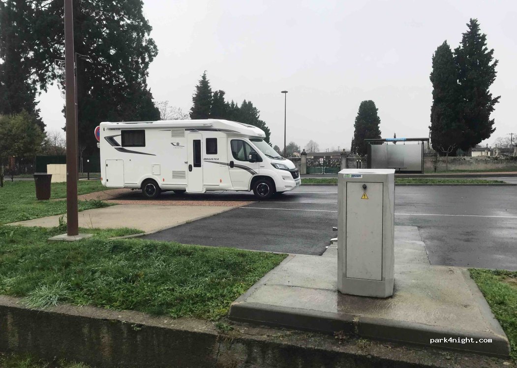 Merci a la municipalité de nous avoir aménagé cette emplacement service compris, vidange,remplissage et électricité, en bord de route, face au cimetière mais ce n’est q’un détail.pour la nuit c’est parfait.