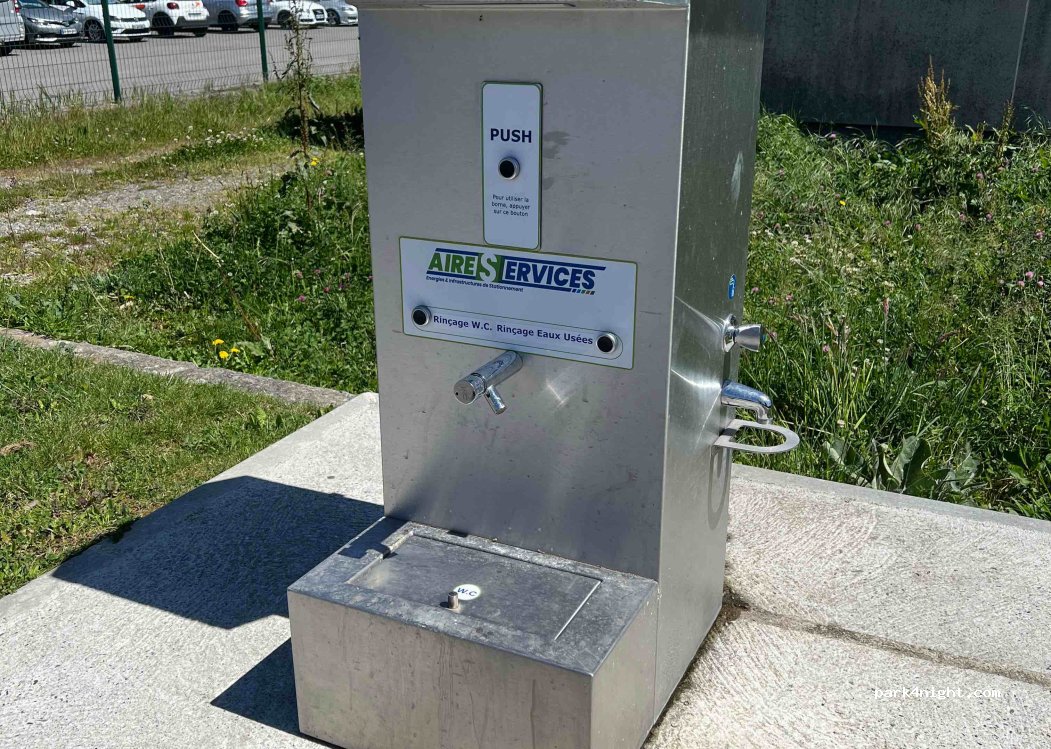 Aire très fonctionnelle pour vider la caissette et le remplissage d’eau ; parfait pour un arrêt en cours de trajet, facile d’accès et proche autoroute, merci à la municipalité
