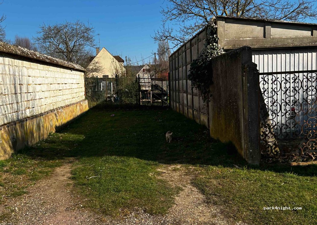 Aussi une place dans un petit renfoncement, très discrète, pour 1 véhicule. Attention, réveil garanti au chant du coq à partir de 5 heures...